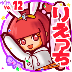 ゆっけ。が贈る【りえっち】用名前スタンプ12です。友達や恋人、グループでのやりとりにぜひ。《きぐるみじょし》01「うさぎなミコちゃん」と親友の「ガルうさ」です。