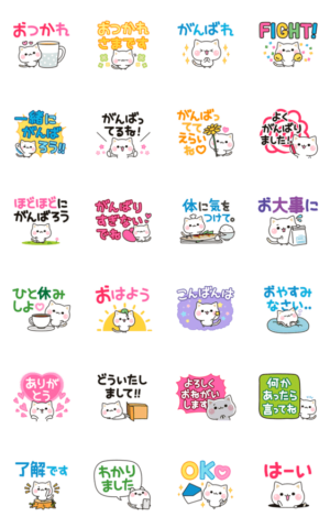 しろねこの大きな文字入りスタンプです。にぎやかなスタンプをラインに飾ってトークを盛り上げましょう!