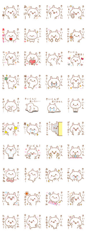 大切な「きいくん」へ送れる、ウサギのあだ名・名前スタンプです。ほめる言葉も。きい君/きい