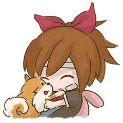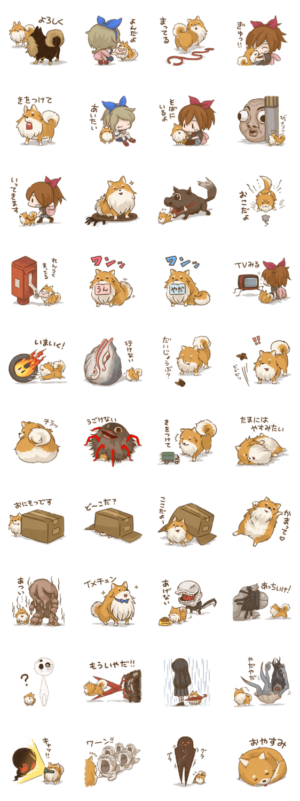 「深夜廻」に登場するポメラニアンの子犬「チャコ」のスタンプだよ。ユイやハル、おばけたちもいるよ。㈱日本一ソフトウェア より発売