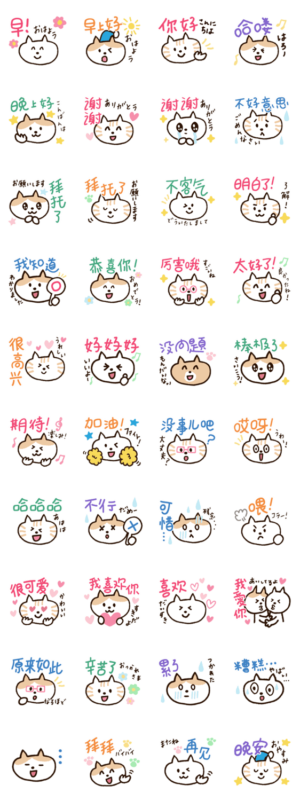 中国語(和訳付き)ねこ❤️ スタンプ画像一覧
