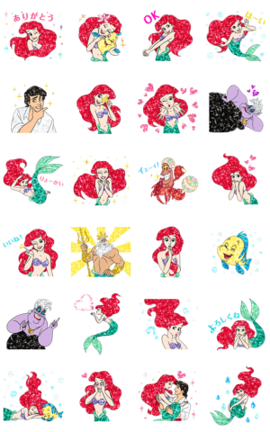 リトルマーメイドのスタンプです。可愛いですね!24種類ダウンロードできるのは良いですね!