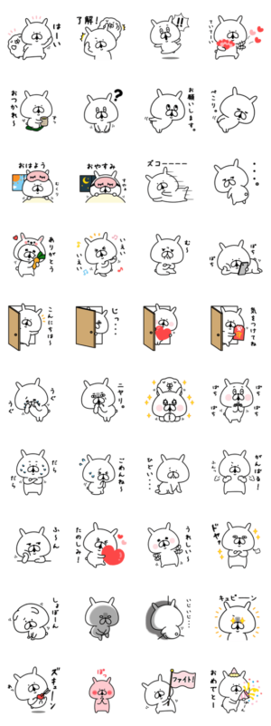 ゆるうさぎの毎日使えるスタンプです。家族や友達、彼氏彼女とのトークにどうぞ。chococo より発売