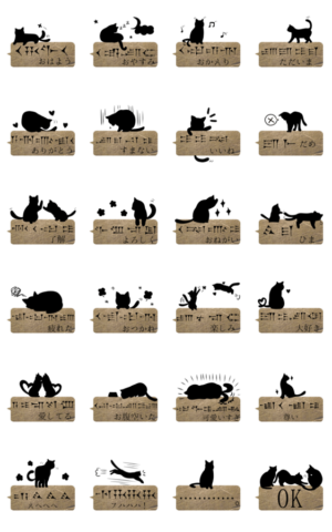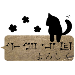 毎日使える黒猫シルエットとメソポタミア 楔形文字のふきだしスタンプ