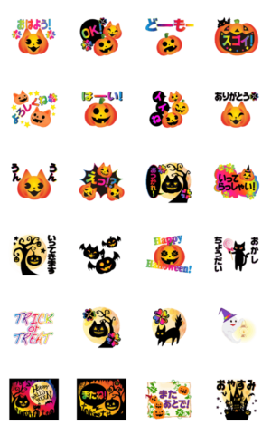 ラッキーレインボークローバーで運気も上がる!?毎日使えるキュートなハロウィンスタンプ!ジャックオランタンや黒猫がドキドキワクワクハロウィンムードを高めます!