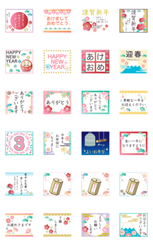 様々な世代の方に使える年賀状セットです。干支などがないので毎年使えますよ♪お正月/寒中見舞い/お祝い/アニメーション/動く/うごスタ/年末年始/和柄/和風