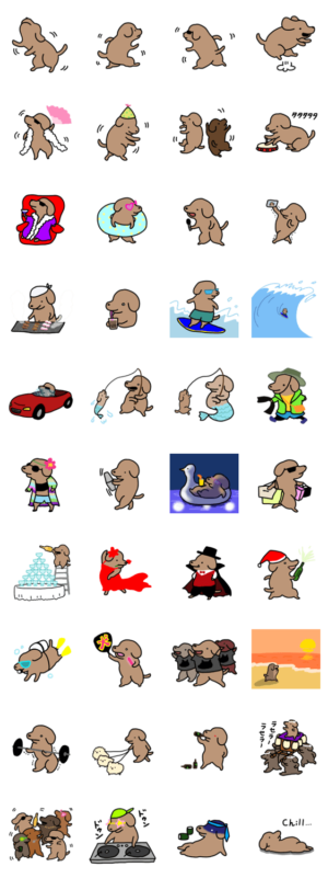 踊るパリピ(party puppies)のスタンプです。うかうか より発売