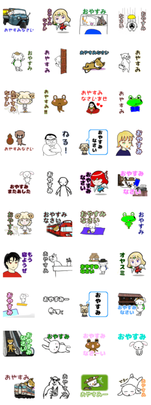 「おやすみ」「おやすみなさい」終了時にも スタンプ画像一覧