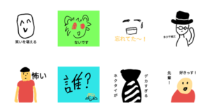 LINE Creators Studioでつくったスタンプです。スタンプ一個につき50秒で作ったのでクオリティ低いよ。
