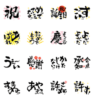 動く!お祝い・褒め言葉~気合いの筆文字 スタンプ画像一覧