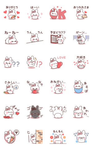 恋人や友人など構ってほしい時に使える!ピンクのリボンを付けた可愛いうさぎちゃんのスタンプです♪DECOR より発売