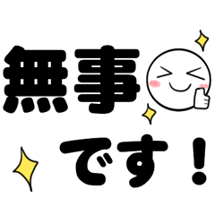 しろくてまるいニコちゃん風のシンプルなデカ文字・台風・地震・大雨・洪水等の災害安否&緊急連絡用基本スタンプ。日常でも使えます