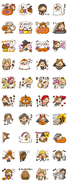 かわいい主婦の1日第42弾【ハロウィン編】はかわいい女の子の楽しいハロウィンスタンプです。魔女・黒猫・おばけなど色んな仮装のかわ主婦がハロウィンを盛り上げます!