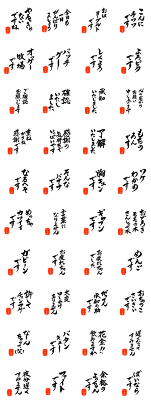 二之宮さん用死語入り筆文字敬語 スタンプ画像一覧