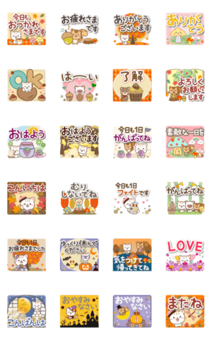 大人のための動く秋スタンプ スタンプに書いてある文字一覧