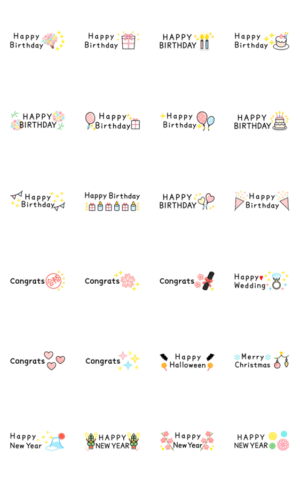 誕生日/合格/入学/卒業/結婚/ハロウィン/クリスマス/お正月...おめでとうを伝えるイベントお祝いスタンプ。大人女子のかわいい小さい省スペースなコンパクトスタンプです。