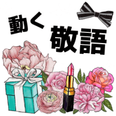 可愛い過ぎないピンクのバラなどの動くお花の敬語スタンプです。オシャレなお花やキラキラが似合う美人な奥様ママお嬢様、お姉さん女子たちにオススメスタンプです。