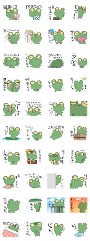 『ほむら先生はたぶんモテない』に出てくるカエルのよしおスタンプです。