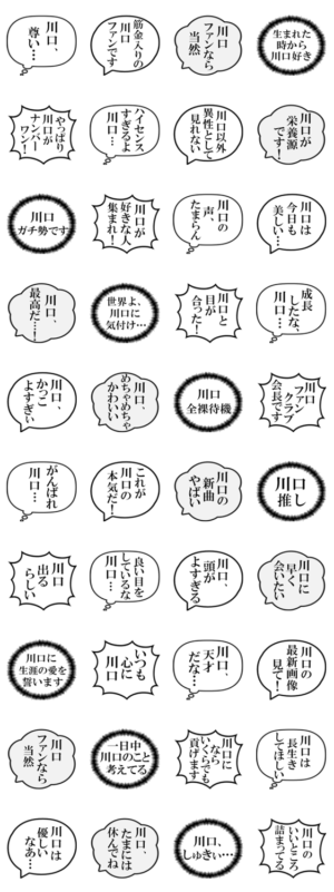 川口(かわぐち)さんを推しているあなたの、好きでたまらない気持ちを代弁するスタンプです。Toda より発売