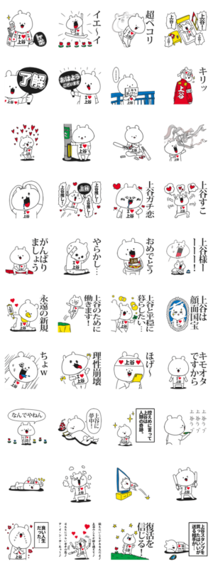 上谷のことが好き過ぎてつらい方のための★ざざ丸★によるスタンプの第2弾です!アイラブ上谷(うえたに.うえだに)!