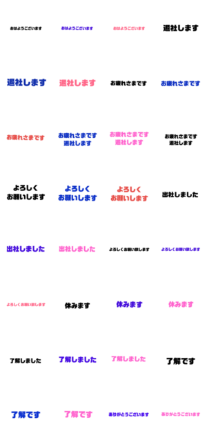 シンプル連絡スタンプ (出社 退社 了解)のダウンロードはこちら↓