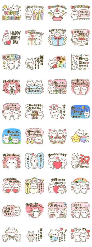 可愛くお祝い♡顔文字うさぎ♪ スタンプ画像一覧