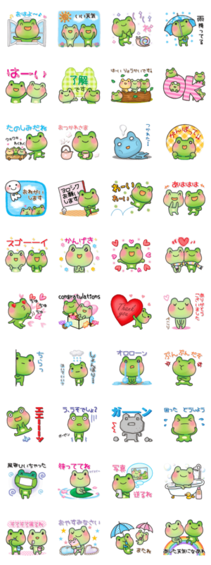 かえるちゃんシリーズの日常会話用です。晴れの日も雨の日も毎日使えるバージョン2です。coyuri より発売