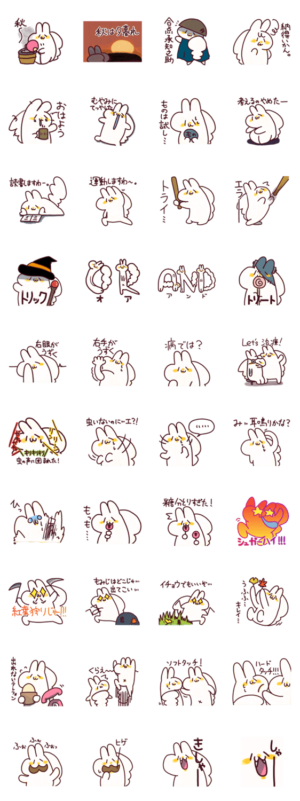 うさぎと犬のハーフ、きなこもちのスタンプ第6段。秋らしい装い。かにこう より発売