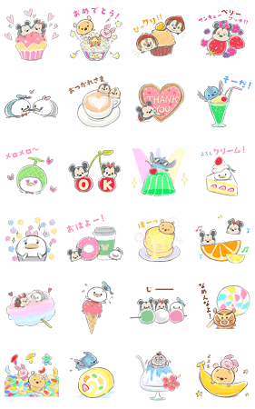 動くスタンプ、ディズニーツムツムです。スイーツバージョンのスタンプ♡