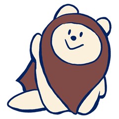 幻の白クオッカ、おもちちゃんのスタンプ! お気に入りの茶色い頭巾をかぶって、今日もおもちはおもち、もちもちおもち