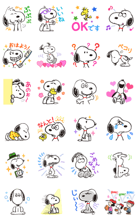 表情豊かなスヌーピーの動くスタンプです。にぎやかなスタンプをラインに飾ってトークを盛り上げましょう。