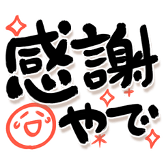 美しい筆文字、毛筆、習字のでか文字で気持ちを伝えるシンプル仕上げのスタンプです。朱墨でアクセント。関西弁
