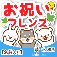 清水/しみず様専用★お祝い動物フレンズ名前入り!ねこ,犬,白兎,熊猫等のイベント挨拶!誕生日おめでとう,新年,クリスマス,ハロウィーン,出産,結婚,就職,合格,入学,卒業他お名前入りスタンプ専用★アイシスデザイン株式会社 より発売