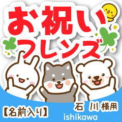 石川/いしかわ様専用★お祝い動物フレンズ名前入り!ねこ,犬,白兎,熊猫等のイベント挨拶!誕生日おめでとう,新年,クリスマス,ハロウィーン,出産,結婚,就職,合格,入学,卒業他お名前入りスタンプ専用★アイシスデザイン株式会社 より発売