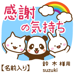 鈴木/すずき様専用!感謝の気持ち動物編!お名前入り!友達や家族や恋人に日常の感謝をどうぶつ達が挨拶♪ねこ/いぬ/うさぎ/しろくま/あざらし/とり/ひよこ/熊猫/柴犬/白兎お名前入りスタンプ専用★アイシスデザイン株式会社 より発売