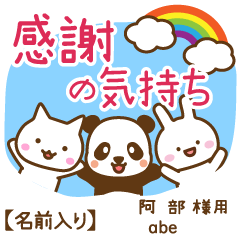 阿部/あべ様専用!感謝の気持ち動物編!お名前入り!友達や家族や恋人に日常の感謝をどうぶつ達が挨拶♪ねこ/いぬ/うさぎ/しろくま/あざらし/とり/ひよこ/熊猫/柴犬/白兎お名前入りスタンプ専用★アイシスデザイン株式会社 より発売