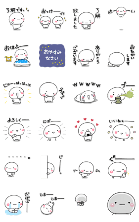 しろまる初の動くスタンプです。毎日使える内容のみを厳選している無難な白キャラスタンプです。【作:いしいともこ】