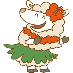 十二支を含む動物がフラダンスを踊るかわいいスタンプ。フラダンスが好きな人、お正月をハワイで過ごす人の新年のあいさつなどに。おまけに人間のスタンプもあります。