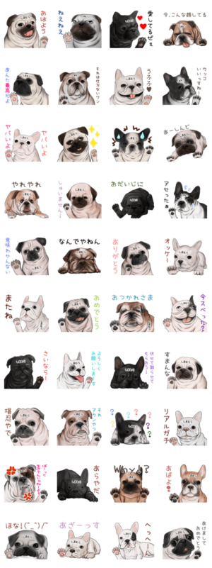 しまむら用リアルガチなパグ&ブルドッグ スタンプ画像一覧