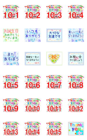 動く!10月1日~15日☆お誕生日☆お祝い スタンプ画像一覧