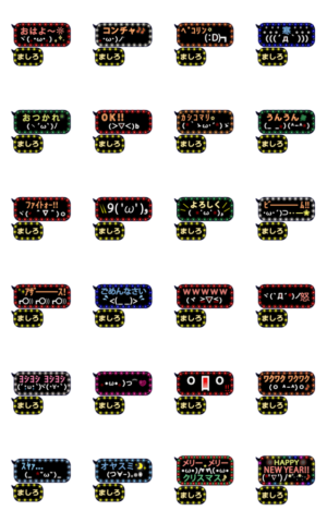 動く顔文字2「ましろ」のふきだしイルミ スタンプ画像一覧