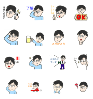 毎日使える男の人のスタンプです。眼鏡をかけています。猫先輩 より発売