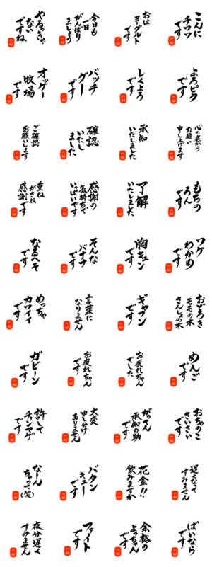 一松さん用死語入り筆文字のスタンプ。敬語丁寧語で仕事でもバンバン使える。判子(はんこ)付きで見た目も鮮やか!