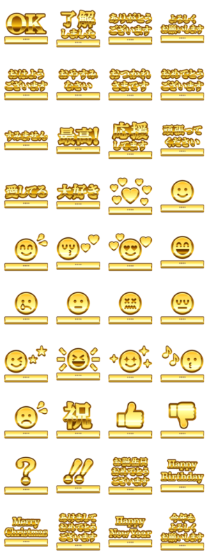 金色文字に ひとことメッセージを添えて スタンプ情報