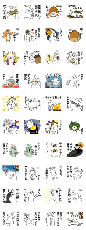 ゆりかの名前スタンプ秋とハロウィン版 スタンプ画像一覧