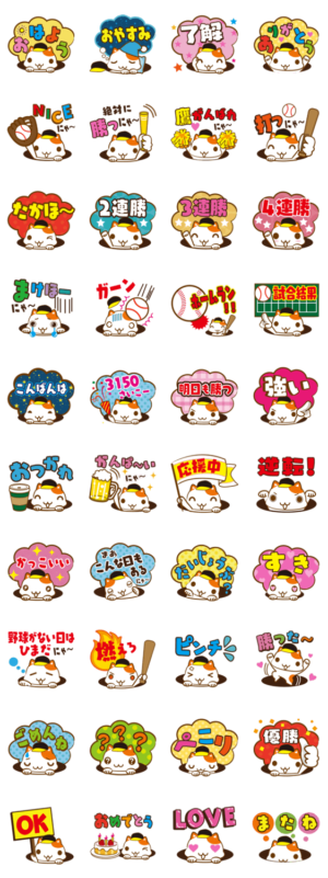 鷹が大好き、鷹を応援するネコ 野球が大好きな博多の猫スタンプです。たかピカmama より発売