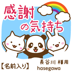 長谷川/はせがわ様用!感謝の気持ち動物編!お名前入り!友達や家族や恋人に日常の感謝をどうぶつ達が挨拶♪ねこ/いぬ/うさぎ/しろくま/あざらし/とり/ひよこ/熊猫/柴犬/白兎お名前入りスタンプ専用★アイシスデザイン株式会社 より発売