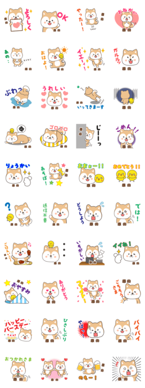 はらだ/原田様専用★毎日使える柴犬!日常会話編!お名前入りいぬスタンプ!友達や大人の毎日の挨拶言葉/家族恋人学生/姓苗字なまえ/しばけん&ひよこ/日本ケン/豆シバイヌお名前入りスタンプ専用★アイシスデザイン株式会社 より発売