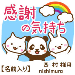 西村/にしむら様専用!感謝の気持ち動物編!お名前入り!友達や家族や恋人に日常の感謝をどうぶつ達が挨拶♪ねこ/いぬ/うさぎ/しろくま/あざらし/とり/ひよこ/熊猫/柴犬/白兎お名前入りスタンプ専用★アイシスデザイン株式会社 より発売
