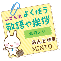 みんと様用うさぎ丁寧敬語挨拶ふせん風[ミント/三人/光叶/光翔/三飛/明桃/明柊]スタンプ内容/感謝/有難う/お祝い/お誕生日おめでとう/ごめんなさい/承知しました/御意お名前入りスタンプ専用★アイシスデザイン株式会社 より発売